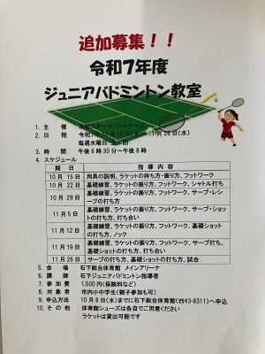 【石下】ジュニアバドミントン教室の参加者を追加募集しています!