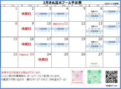 2月きぬ温水プール予定表